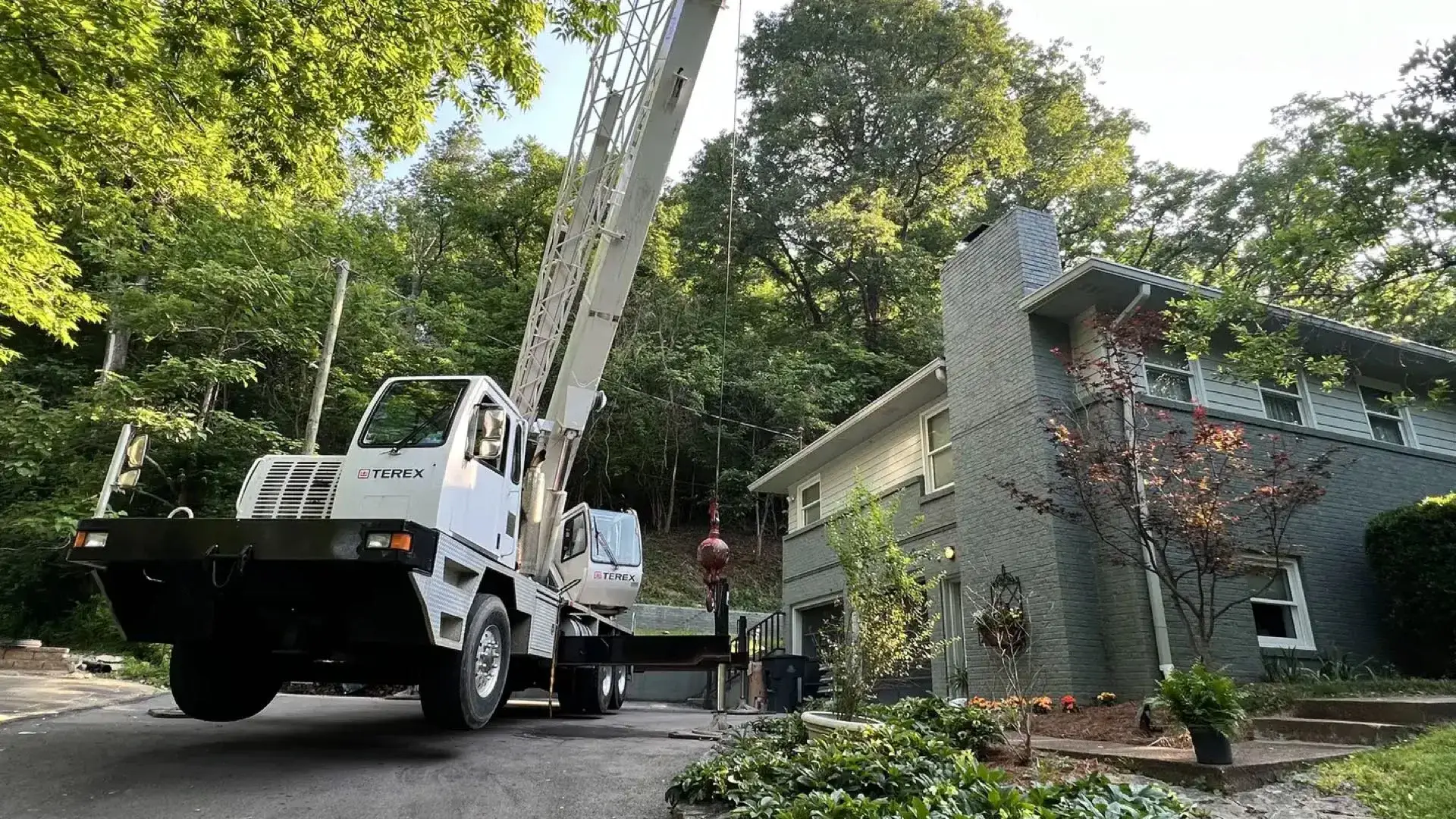 Yes. Tight removals often require sectional dismantling and controlled lowering to protect structures and landscaping.